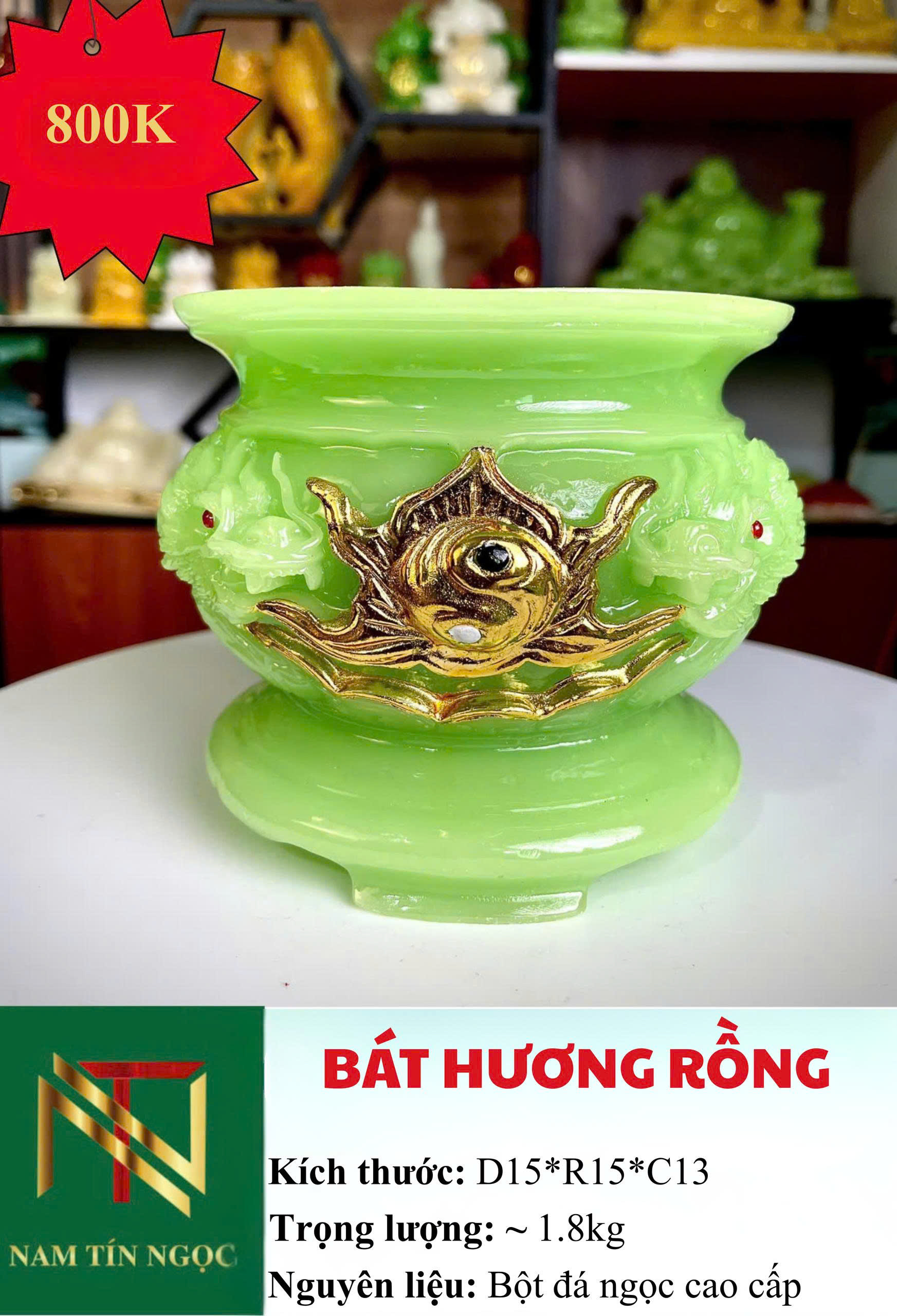 🪷 Bát Nhang Phong Thủy Xanh Ngọc – Biểu Tượng Cát Tường & Bình An 🪷 Bát nhang phong thủy được chế tác từ bột đá tổng hợp cao cấp, màu xanh ngọc dịu nhẹ, kết hợp họa tiết Bát Quái và hoa sen vàng nổi bật, mang đến sự trang nghiêm – tôn kính – thu hút vượng khí cho không gian thờ cúng.