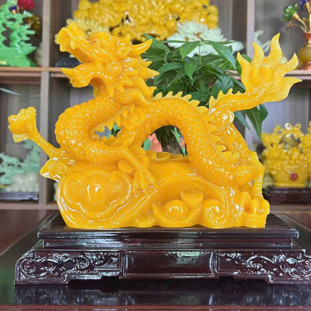 Tượng rồng phong thủy trên đế vàng là sự kết hợp biểu tượng của quyền lực và vẻ đpẹ tinh khiết. Mang đến cho gia chủ sự thịnh vượng và bình an.